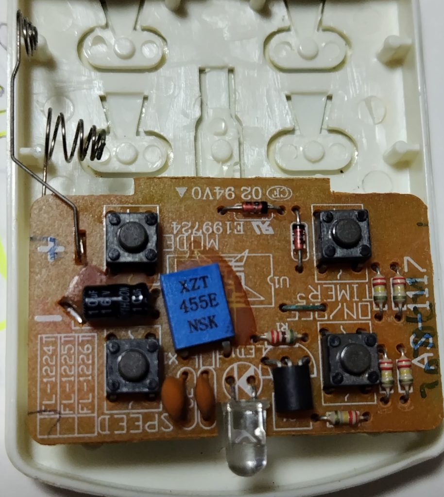 先日、故障して廃棄した扇風機はリモコンがついていたので、中身を調べてみました。