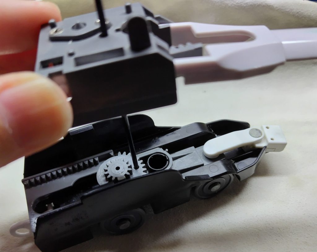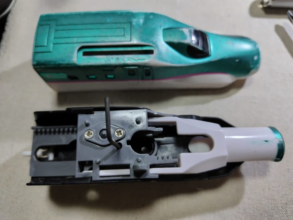 これを入手した目的は最終的には部品取りですが、修理依頼のあった同型はやぶさが壊れていて本来の所作がよくわからなかったため、そこを理解するためです。