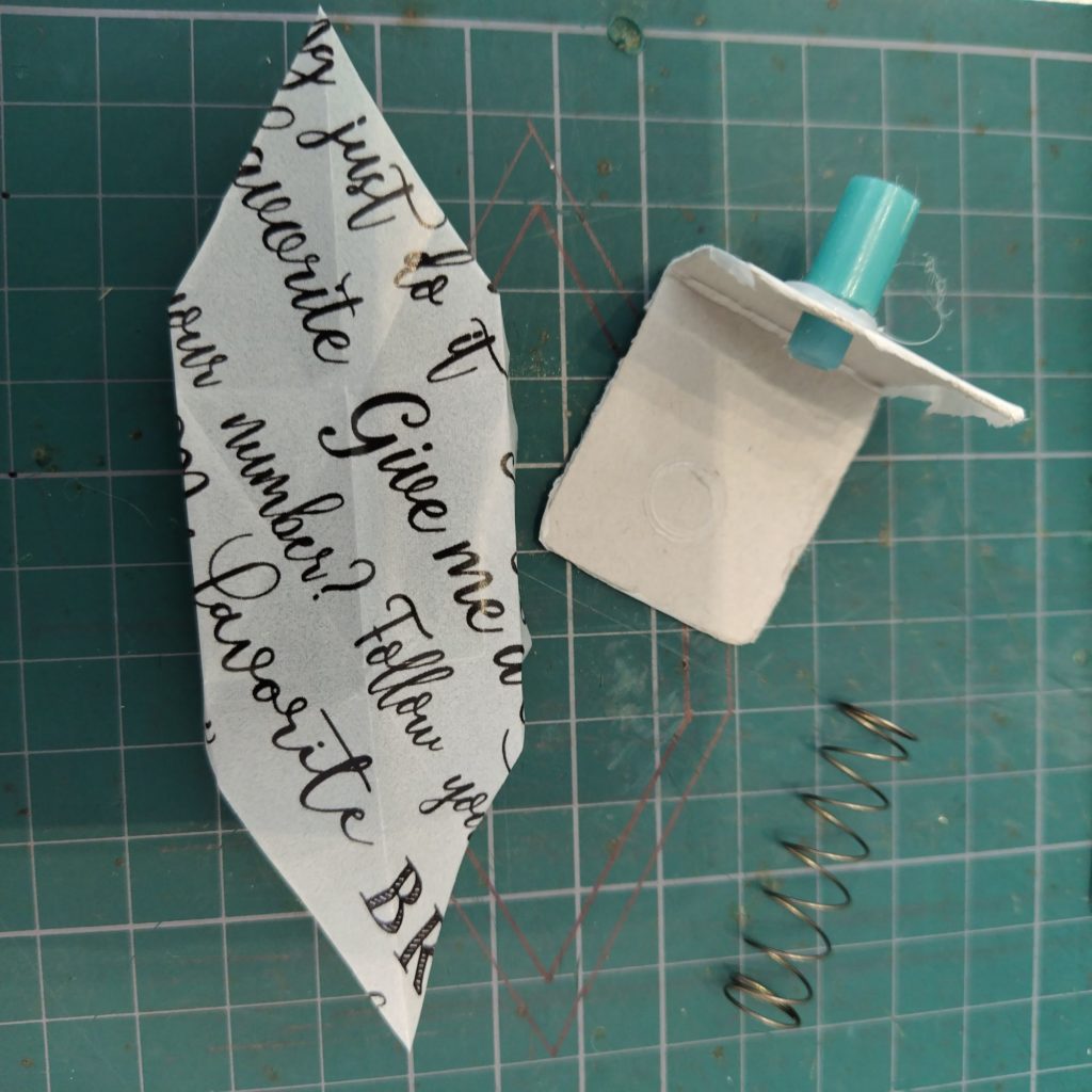 先日ひばりが丘で教わったとおりフイゴを紙で再生しました。幸いにもリードの部分は綺麗な音が出たので壊れていないようです。バネは今回はホットボンドでくっつけました。周囲の袋の部分は木工用ボンドです。