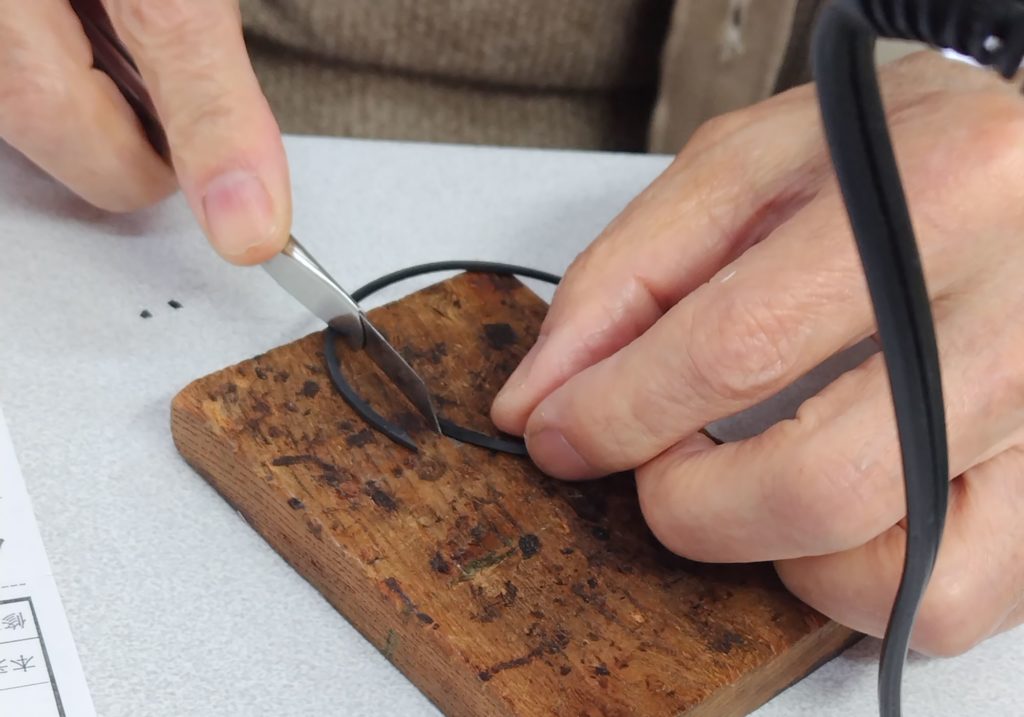 単純な原因なので対応はゴムをはめるだけなのですが、そのゴムは他のドクターも含めて手持ちがありません。大先輩のドクターに尋ねたら、「切れたやつ貸してみろ、オレが作ってやる」と一言。どうやら工業用のゴムは瞬間接着剤ととても馴染みが良く、切れた部分を断面積が大きくなるように斜めに切って貼り付けると、しっかりと接着されるとのこと。実際にその手順を拝見して出来上がったゴムは引っ張っても切れませんでした。