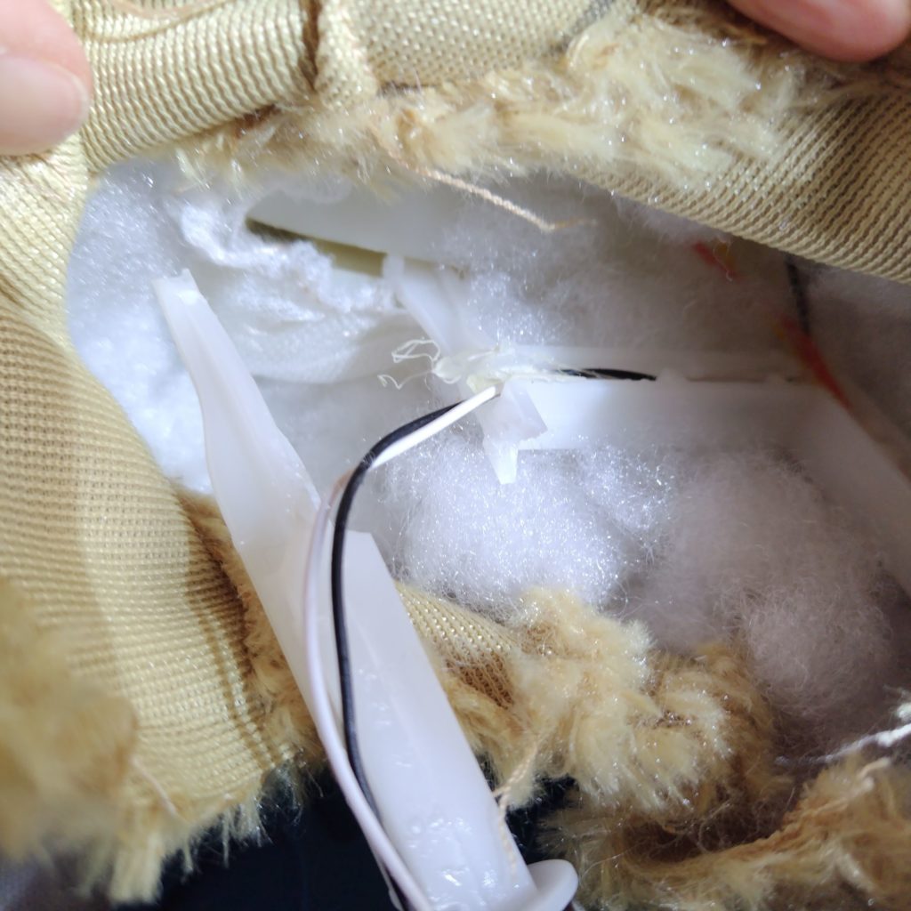 ガーゼをめくってみたら背骨にあたる背板が出てきました。これを首に突っ込んで安定させているようです。