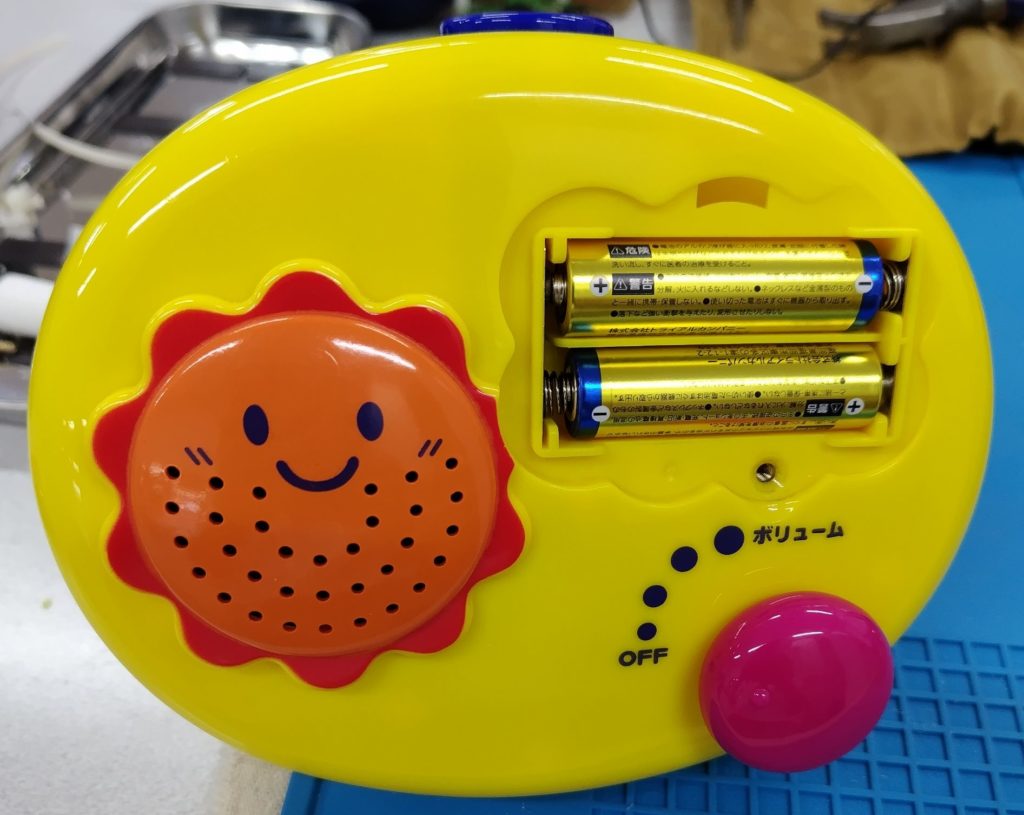 電子楽器なのかおもちゃなのかよくわかりませんが、主訴はスイッチを入れてもランプは点灯するが音が出なくなったというもの。