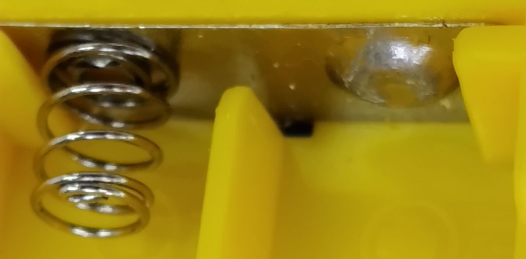 電池を入れて電圧を調べたらボリウムのところに既に電圧がかかっておらず、「これは断線か?」と疑いましたが、テスタを当てるとなぜか音が出る!電池ボックスの正極負極を調べると電圧がない。つまり電池ボックスに問題がありました。