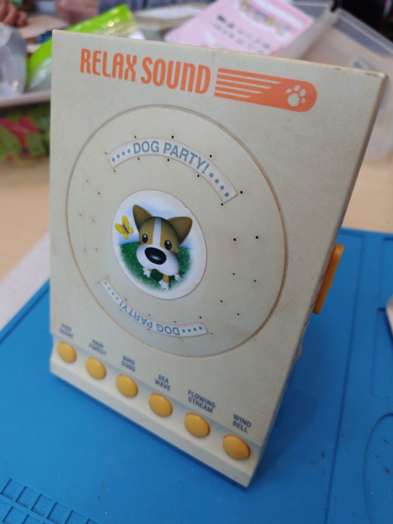 二件目は、リラックスサウンドという初めて見るものでした。波の音や鳥の鳴き声などの下に並んだボタンを選択すると、それに応じてスピーカーから音が出るというものです。本体横のスライドスイッチで鳴動時間を選択できるようになっていて、ボリューム調整もできます。